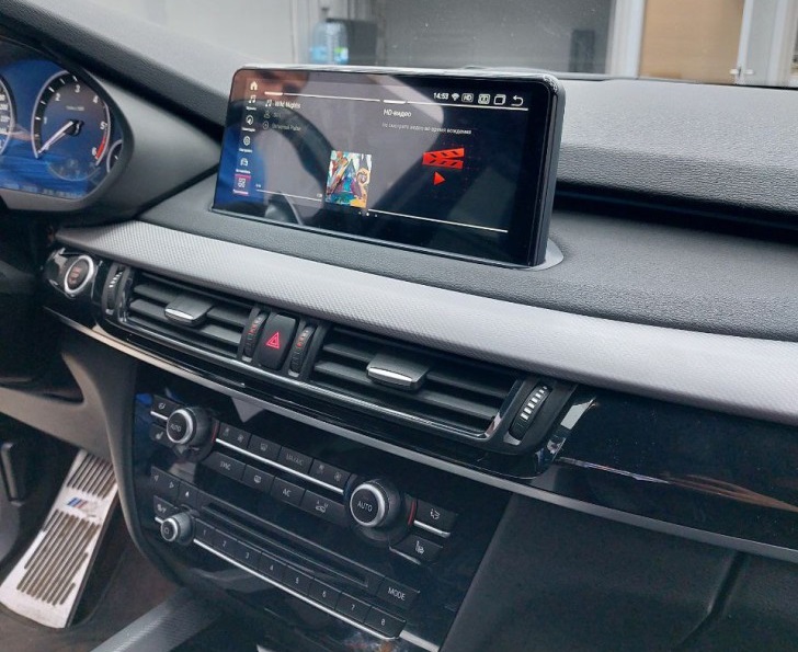 Замена заводского монитора BMW X5/X6 (F15/F16) 2014-2016 NBT на 10,25-дюймовый емкостный сенсорный экран высокого разрешения (1920х720) с предустановленной ОС Android 13. Монитор устанавливается в штатное место автомобиля взамен оригинального монитора и органично вписывается в интерьер салона, при этом сохраняются все штатные функции: FM радио, работа кнопок на руле, штатная камера заднего вида, парктроник и т.д…