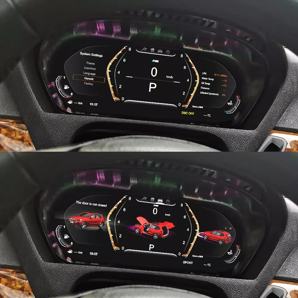 Замена штатной приборной панели на 12,3-дюймовую цифровую панель высокого разрешения дает новый уровень комфорта и улучшит визуальный опыт при использовании Вашего автомобиля BMW. Цифровая приборная панель Radiola имеет QLED дисплей, что обеспечивает гораздо более яркую и четкую картинку, а также более широкий угол обзора. Панель устанавливается в штатное место автомобиля взамен оригинальной и органично вписывается в интерьер салона.