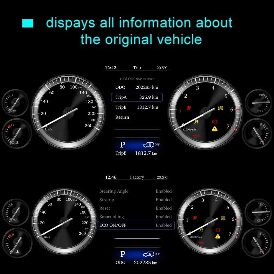 Замена штатной приборной панели в Тойота Прадо 150 на 12,3-дюймовую цифровую панель высокого разрешения дает новый уровень комфорта и улучшит визуальный опыт при использовании Вашего автомобиля. Цифровая приборная панель для Toyota Prado 150 имеет QLED дисплей, что обеспечивает гораздо более яркую и четкую картинку, а также более широкий угол обзора. Панель устанавливается в штатное место автомобиля взамен оригинальной и органично вписывается в интерьер салона.