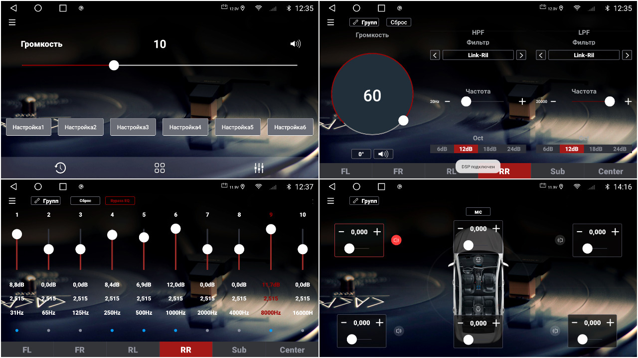 - При подключении сторонних процессоров по оптике звук может регулироваться с кнопок руля авто или автомагнитолы (переключатель в приложении RP DSP)