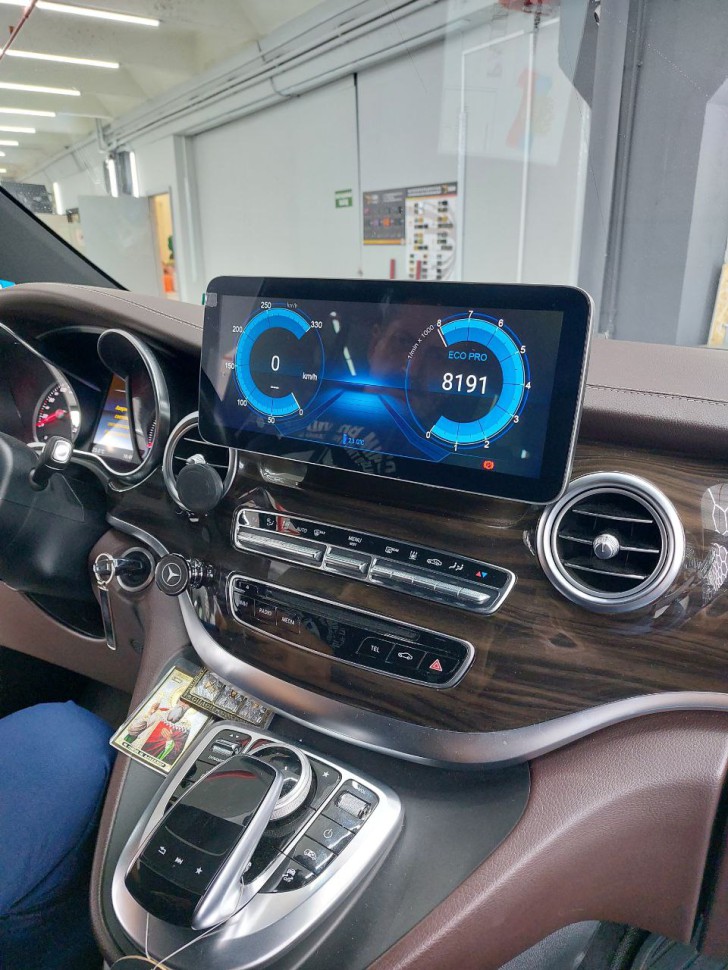 Замена заводского монитора Mercedes-Benz V260 2014-2019 NTG 5.0/5.1 на 12,3 дюймовый емкостный сенсорный экран высокого разрешения (1920х720) с предустановленной ОС Android 13. Монитор устанавливается в штатное место автомобиля взамен оригинального монитора и органично вписывается в интерьер салона, при этом сохраняются все штатные функции: FM радио, работа кнопок на руле, штатная камера заднего вида, парктроник и т.д…