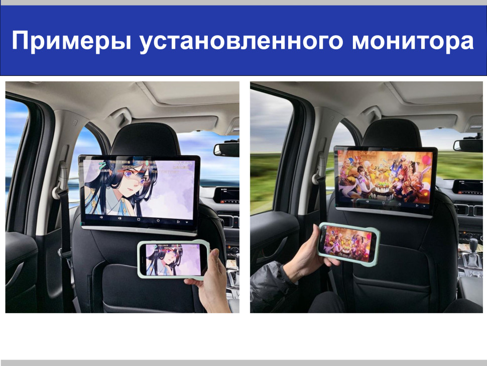Продуманное крепление надежно фиксирует монитор на опорах штатного подголовника и позволяет отрегулировать оптимальную высоту расположения устройства относительно подголовника в одно касание, а наличие кабеля прикуривателя в комплекте, поможет начать пользоваться устройством без посещения дорогостоящих установочных центров сразу после покупки.