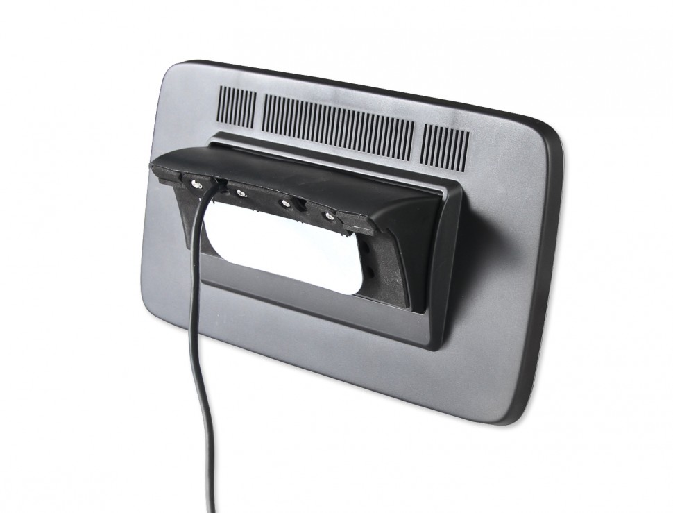 Крепление монитора предполагает установку не на металлические опоры подголовника, как это происходит с универсальными мониторами, а на жесткую пластиковую защиту спинки переднего кресла.