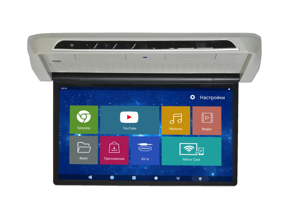 В потолочном мониторе есть встроенный модуль Wi-Fi! Раздав интернет с телефона, или подключив монитор к мобильному роутеру, вы и ваши попутчики всю дорогу можете коротать время за, уже привычном и удобном для нас, YouTube или же можно сразу из меню перейти в онлайн кинотеатр Кинопоиск.