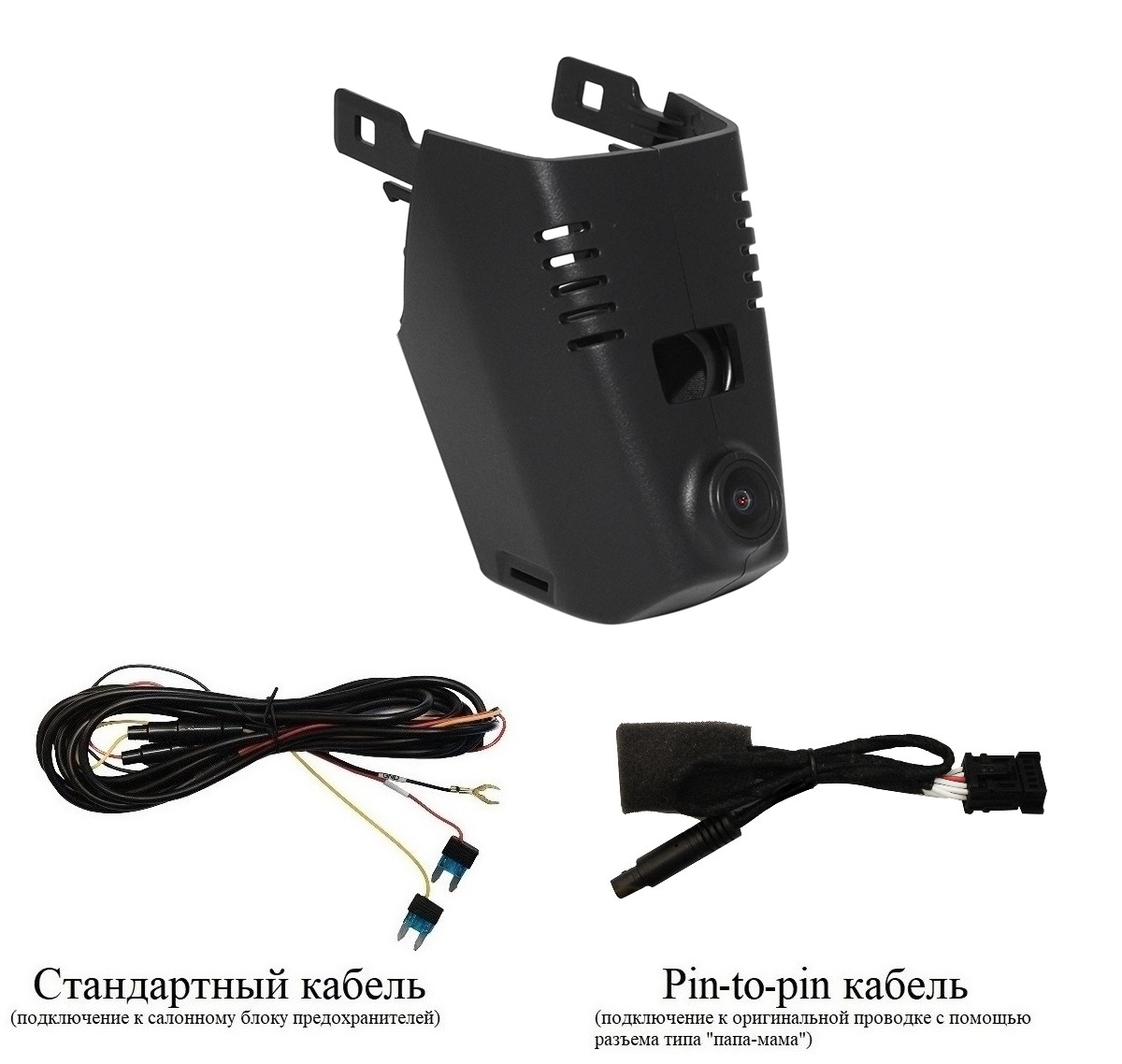 - Провод питания (два варианта подключения питания: стандартный кабель и кабель типа папа-мама к оригинальной проводке)