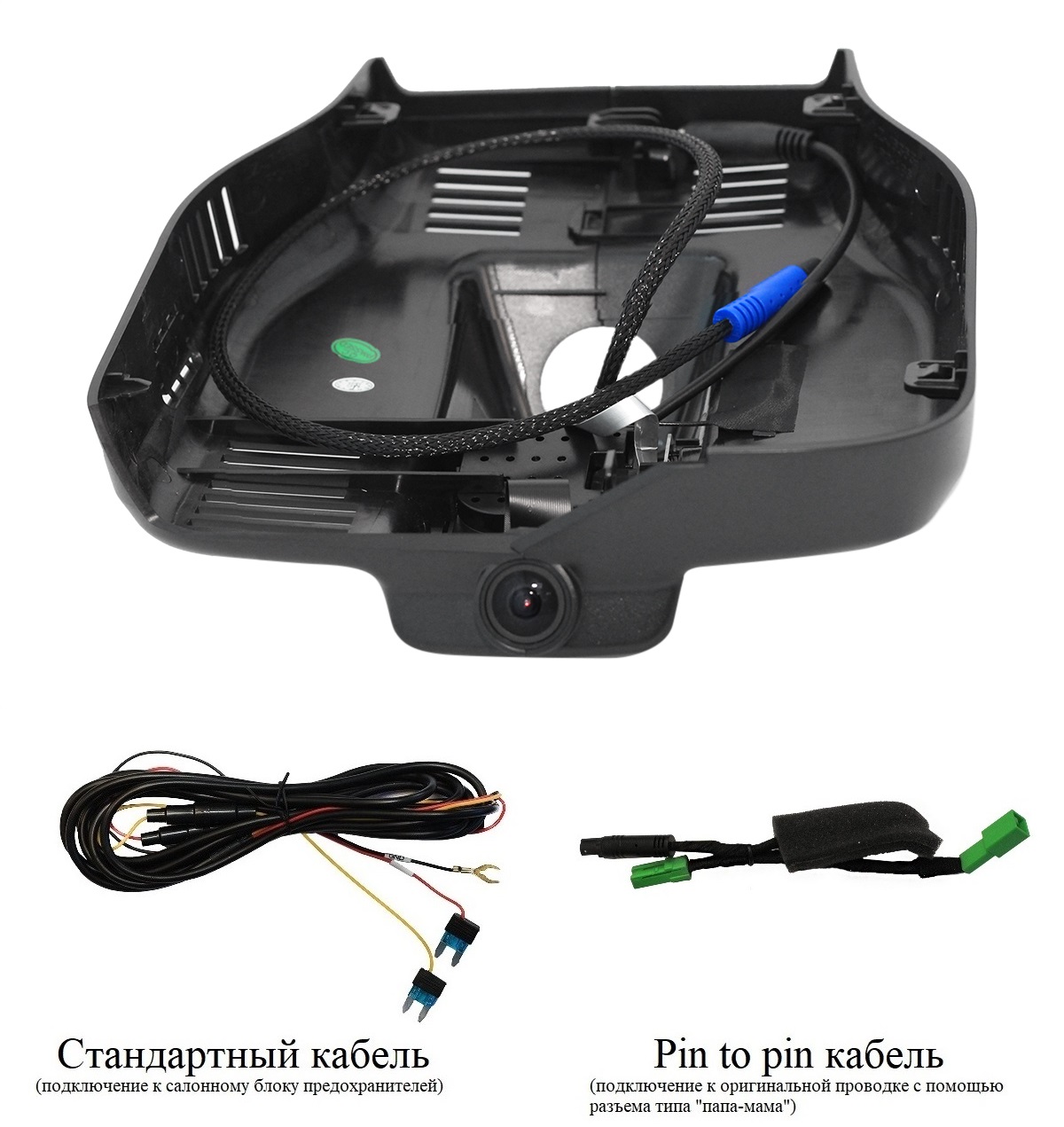 - Провод питания (два варианта подключения питания: стандартный кабель и кабель типа папа-мама к оригинальной проводке)