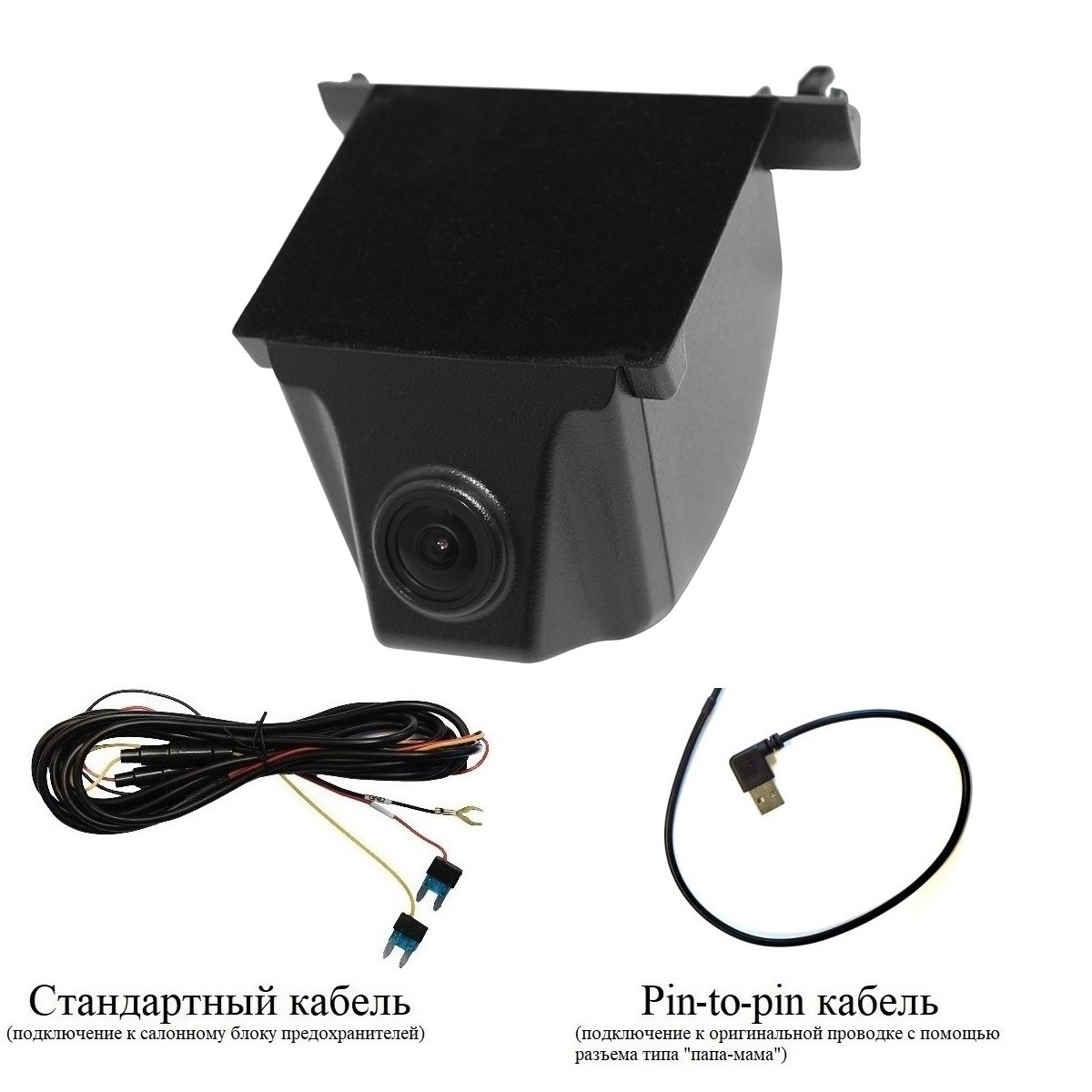 - Провод питания (два варианта подключения питания: стандартный кабель и кабель типа папа-мама к оригинальной проводке)