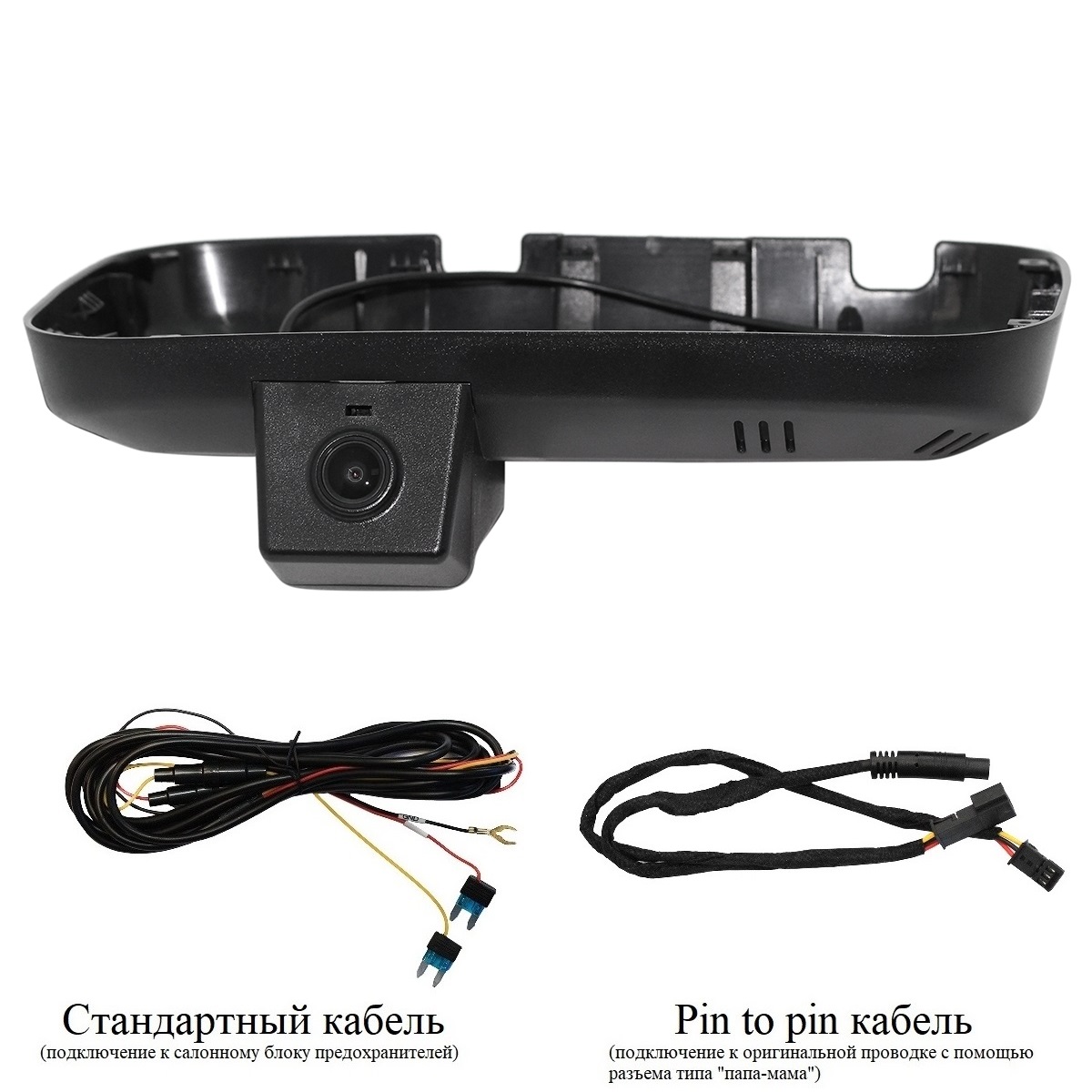 - Провод питания (два варианта подключения питания: стандартный кабель и кабель типа папа-мама к оригинальной проводке)