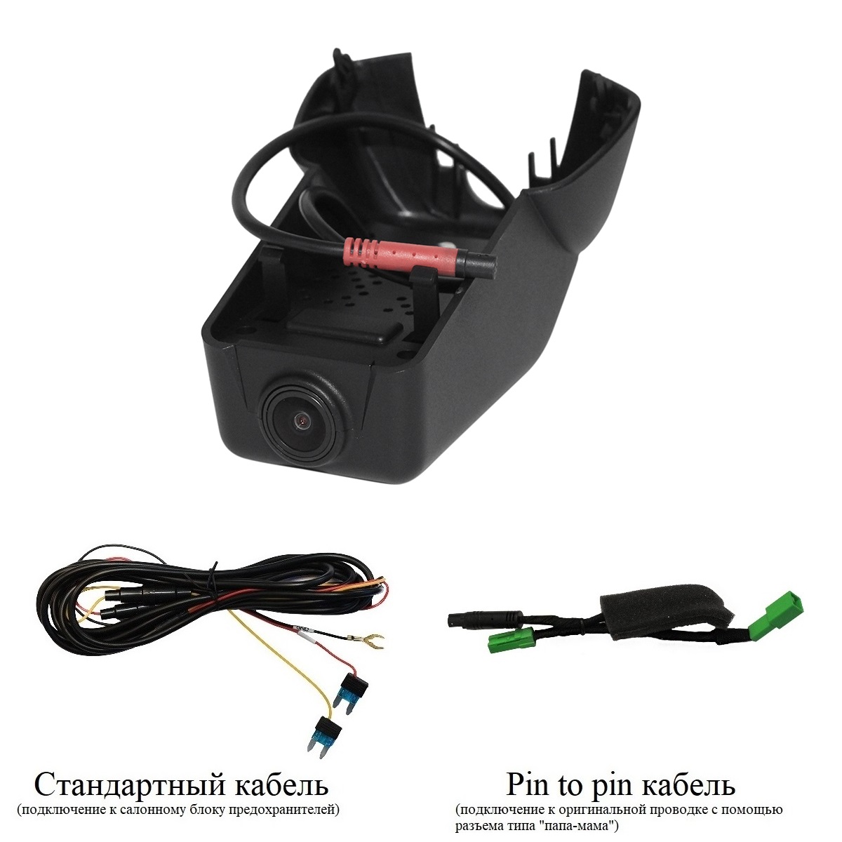 - Провод питания (два варианта подключения питания: стандартный кабель и кабель типа папа-мама к оригинальной проводке)