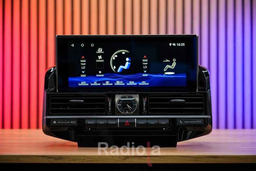 Замена заводского монитора Toyota Land Cruiser 200 2016-2021 на 12,3-дюймовый емкостный сенсорный экран высокого разрешения (1920х720) с предустановленной ОС Android 13. Монитор устанавливается в штатное место автомобиля взамен оригинального монитора и органично вписывается в интерьер салона, при этом сохраняются все штатные функции: FM радио, работа кнопок на руле, штатная камера заднего вида, парктроник и т.д…