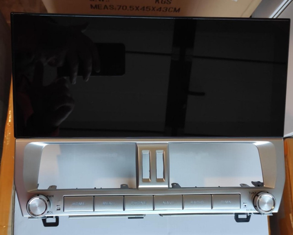 Замена заводского монитора Toyota Land Cruiser Prado 2017+ на 12,3 дюймовый емкостный сенсорный экран высокого разрешения (1920х720) с предустановленной ОС Android 10. Монитор устанавливается в штатное место автомобиля взамен оригинального монитора и органично вписывается в интерьер салона, при этом сохраняются все штатные функции: FM радио, работа кнопок на руле, штатная камера заднего вида, парктроник и т.д…