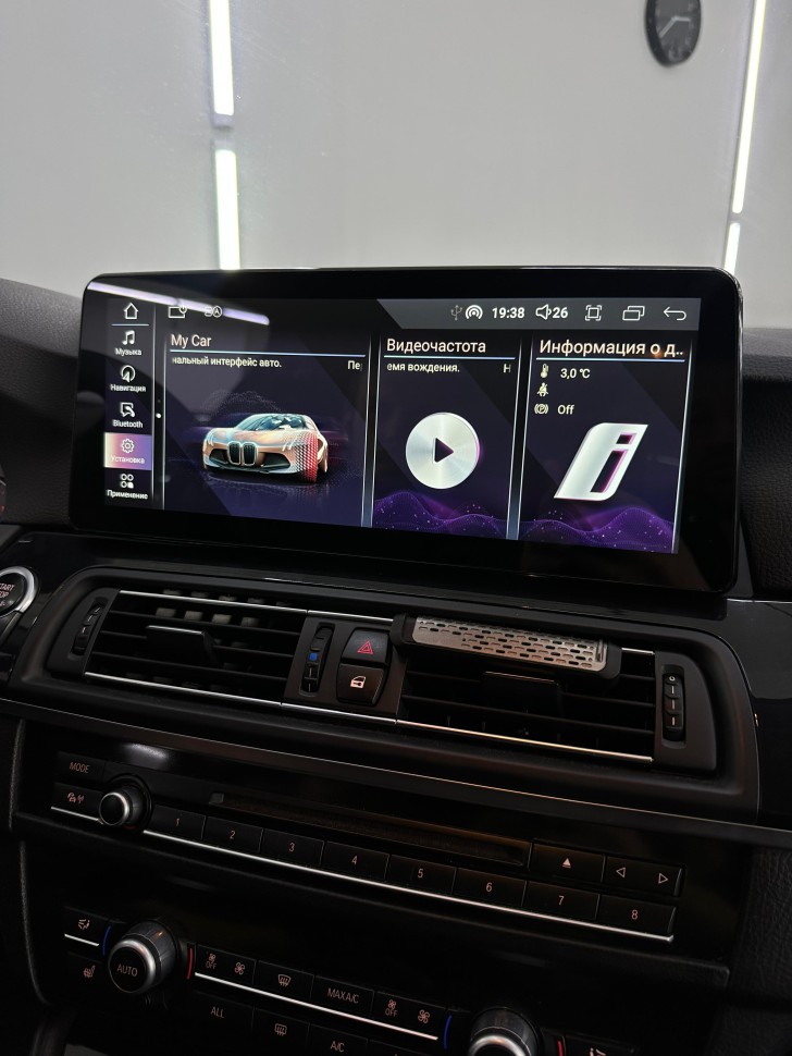 Замена заводского монитора BMW 5 серии GT F07 2013-2016 NBT на 12,3 дюймовый емкостный сенсорный экран высокого разрешения (1920х720) с предустановленной ОС Android 12. Монитор устанавливается в штатное место автомобиля взамен оригинального монитора и органично вписывается в интерьер салона, при этом сохраняются все штатные функции: FM радио, работа кнопок на руле, штатная камера заднего вида, парктроник и т.д…