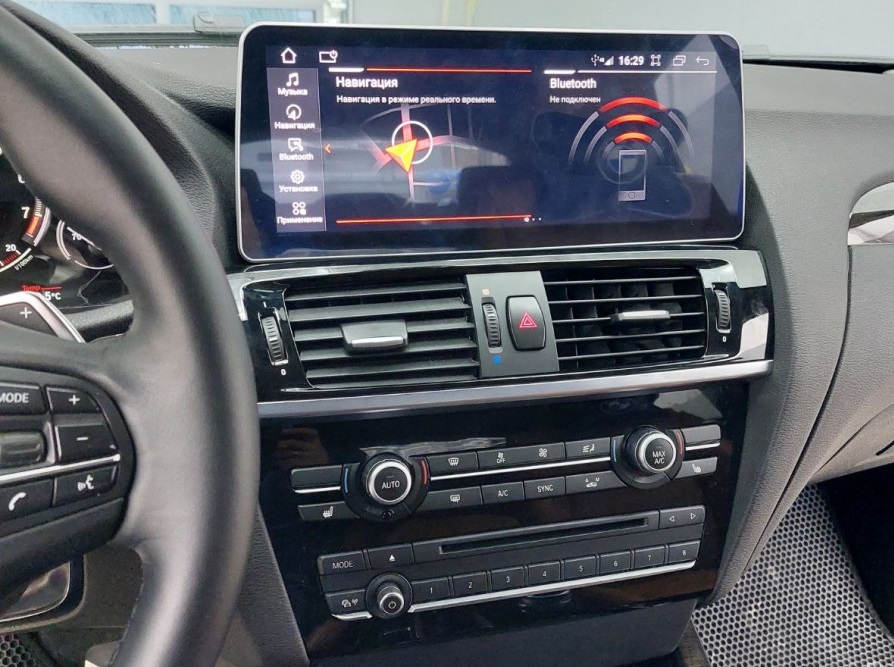 Замена штатного монитора BMW X3/X4 (F25/F26) 2013-2016 NBT на 12,3-дюймовый емкостный сенсорный экран высокого разрешения (1920х720) с предустановленной ОС Android 13. Монитор устанавливается в штатное место автомобиля взамен оригинального монитора и органично вписывается в интерьер салона, при этом сохраняются все штатные функции: FM радио, работа кнопок на руле, штатная камера заднего вида, парктроник и т.д…