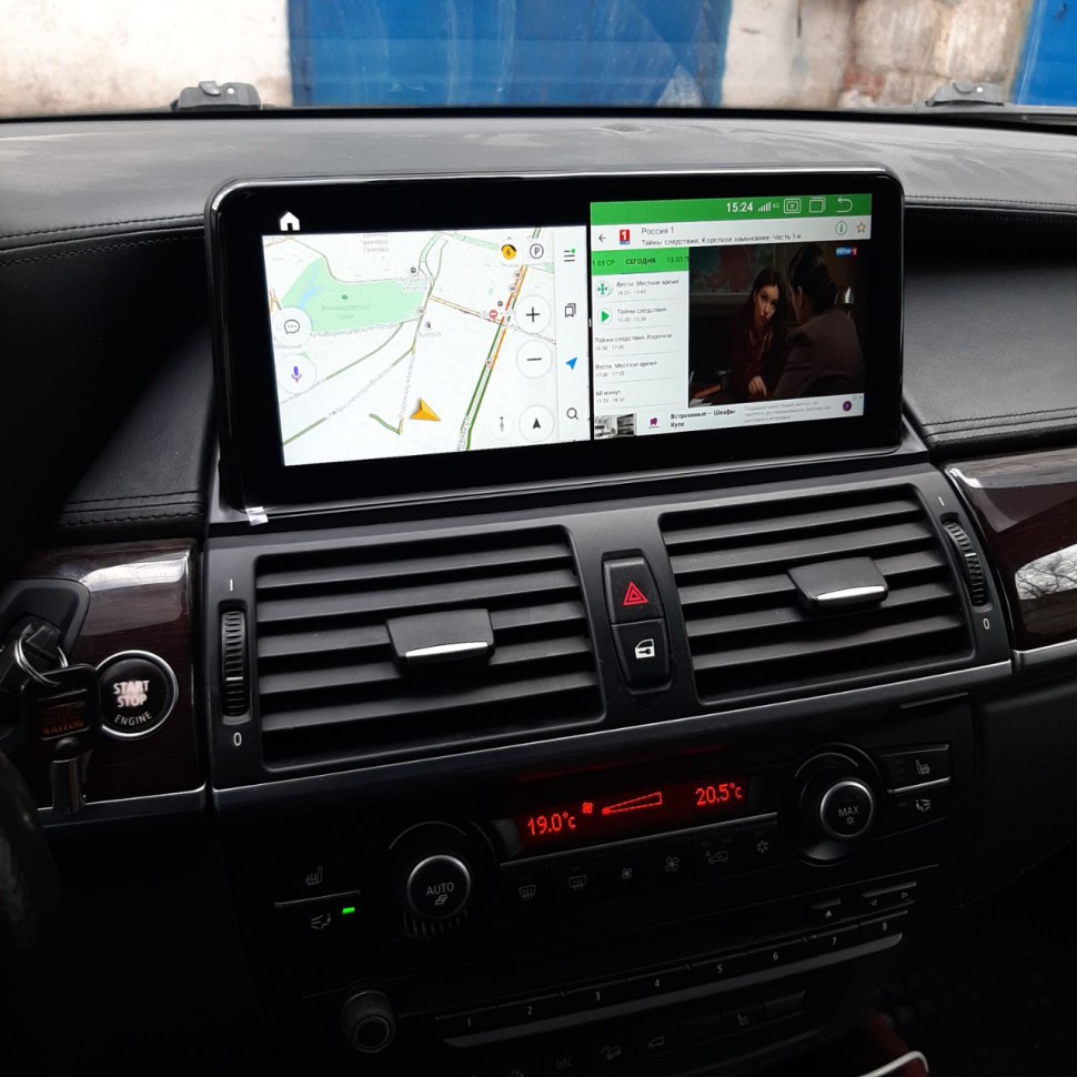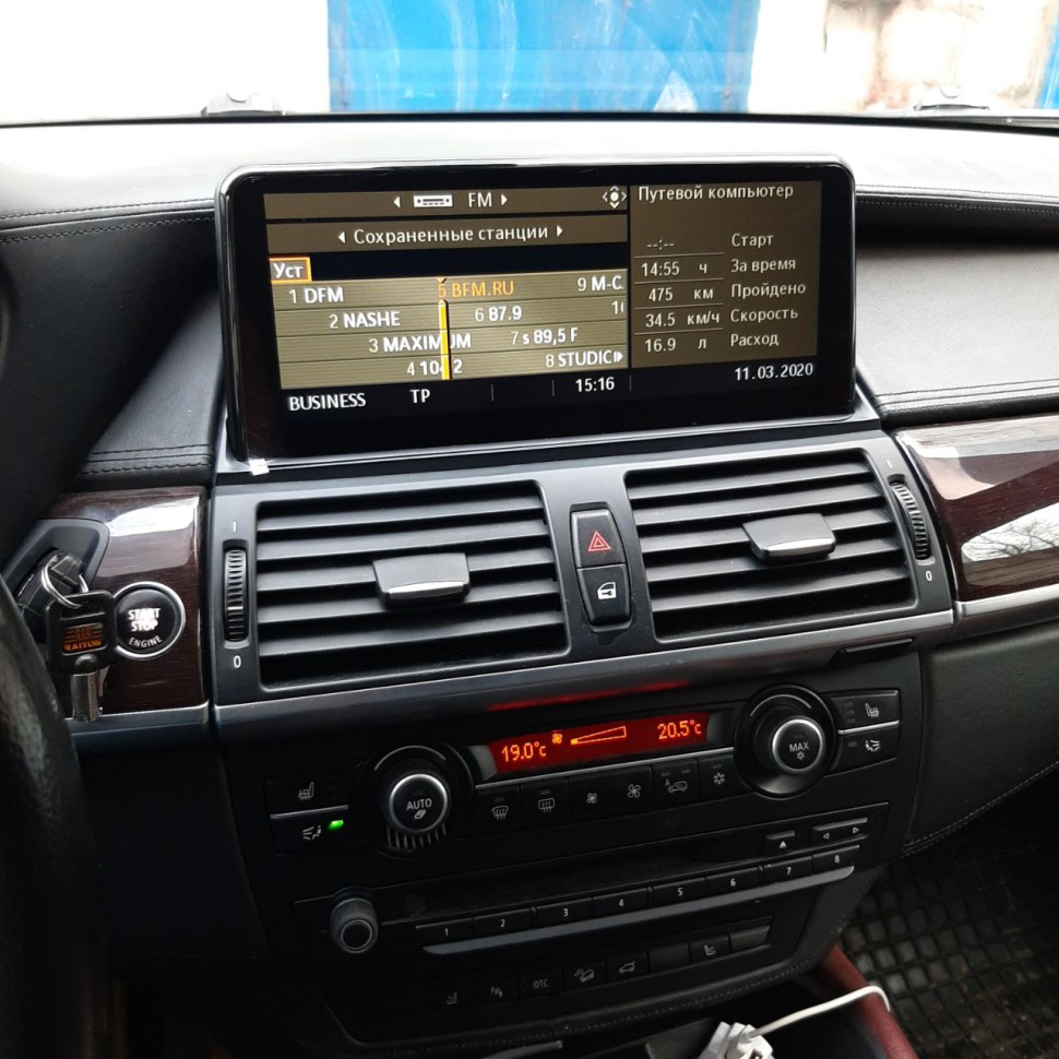 Замена заводского монитора BMW X6 E71 2007-2010 CCC на 10,25 дюймовый емкостный сенсорный экран высокого разрешения (1920х720) с предустановленной ОС Android. Монитор устанавливается в штатное место автомобиля взамен оригинального монитора и органично вписывается в интерьер салона, при этом сохраняются все штатные функции: FM радио, работа кнопок на руле, штатная камера заднего вида, парктроник и т.д…
