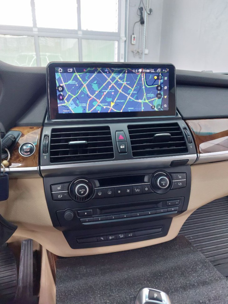 Замена заводского монитора BMW X5 E70 2011-2014 CIC на 10,25 дюймовый емкостный сенсорный экран высокого разрешения (1920х720) с предустановленной ОС Android . Монитор устанавливается в штатное место автомобиля взамен оригинального монитора и органично вписывается в интерьер салона, при этом сохраняются все штатные функции: FM радио, работа кнопок на руле, штатная камера заднего вида, парктроник и т.д…