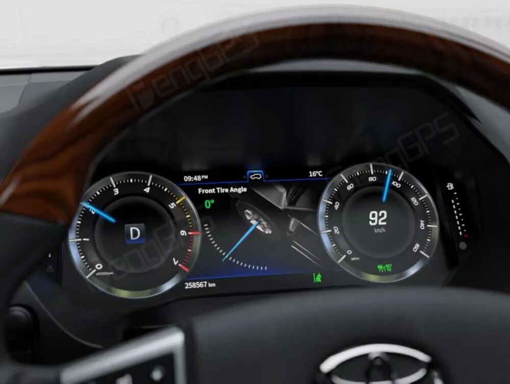 Замена штатной приборной панели в Тойота Прадо 150 на 12,3-дюймовую цифровую панель высокого разрешения дает новый уровень комфорта и улучшит визуальный опыт при использовании Вашего автомобиля. Цифровая приборная панель для Toyota Prado 150 имеет QLED дисплей, что обеспечивает гораздо более яркую и четкую картинку, а также более широкий угол обзора. Панель устанавливается в штатное место автомобиля взамен оригинальной и органично вписывается в интерьер салона.