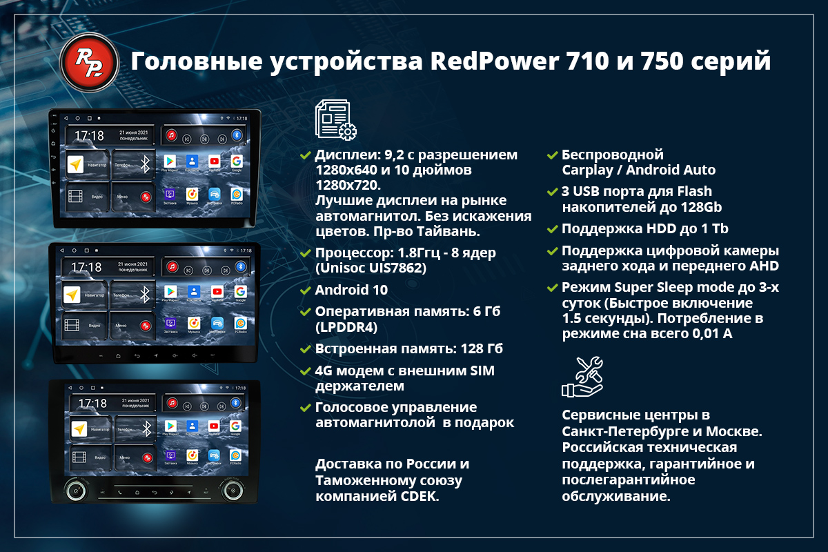 Магнитола для Toyota (200х100мм) - Redpower 75071 Android 10, ТОП процессор, 6Гб+128Гб, CarPlay, SIM-слот