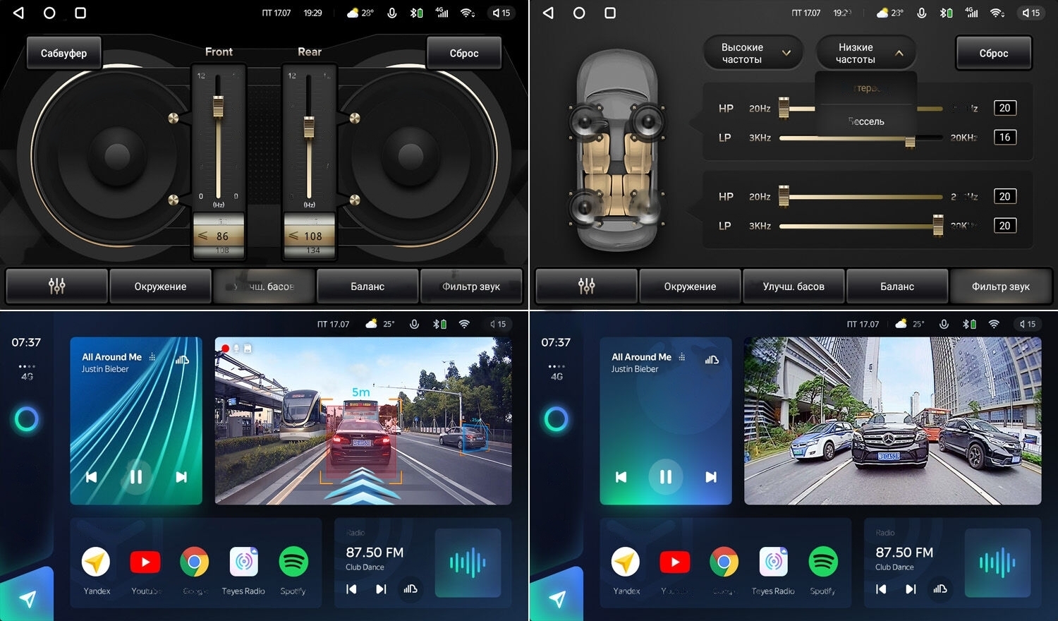 | Усиление низких частот по колонкам перед/зад | Есть |