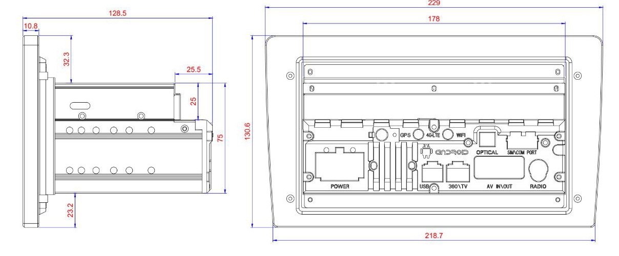 - 1 видеовход под камеру заднего вида: 720P; Поддержка камер AHD