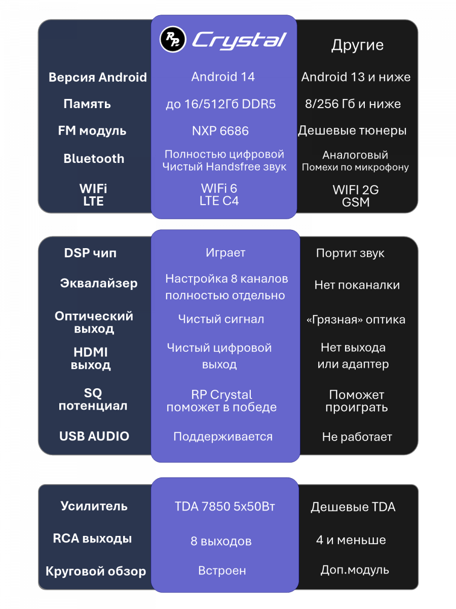 - Встроенный усилитель 4 канала TDA 7850 мощностью до 45 Вт для подключения в штатной проводке.