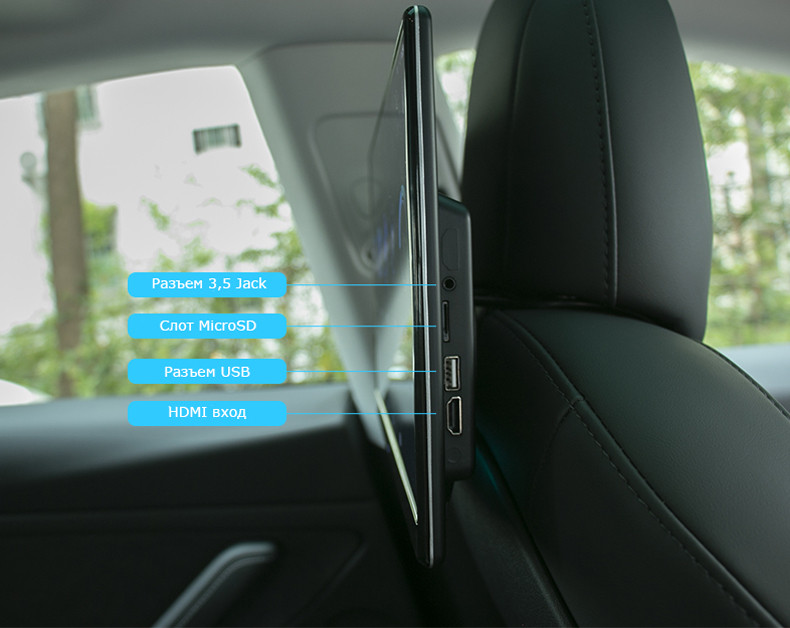 Модель навесного монитора ERGO ER14AN поставляется с уникальным быстросъемным креплением. Теперь главный провод подключения выходит не из монитора, как раньше, а скрытно подведен к разъему в нижней части крепежа. Это означает, что одним движением руки, монитор может быть снят и далее используйте его в отеле или в поездке к друзьям, подключив к обычной сети 220В через адаптер питания (не входит в комплектацию). Гнездо питания расположено на задней стенке устройства на ответной части крепежа, которое можно использовать как подставку, расположив монитор на столе. Важно отметить, что помимо питания в крепление монитора может быть также заведен видеовход (подключите цифровой ТВ тюнер или штатную магнитолу) и аудиовыходы на штатную акустику автомобиля.