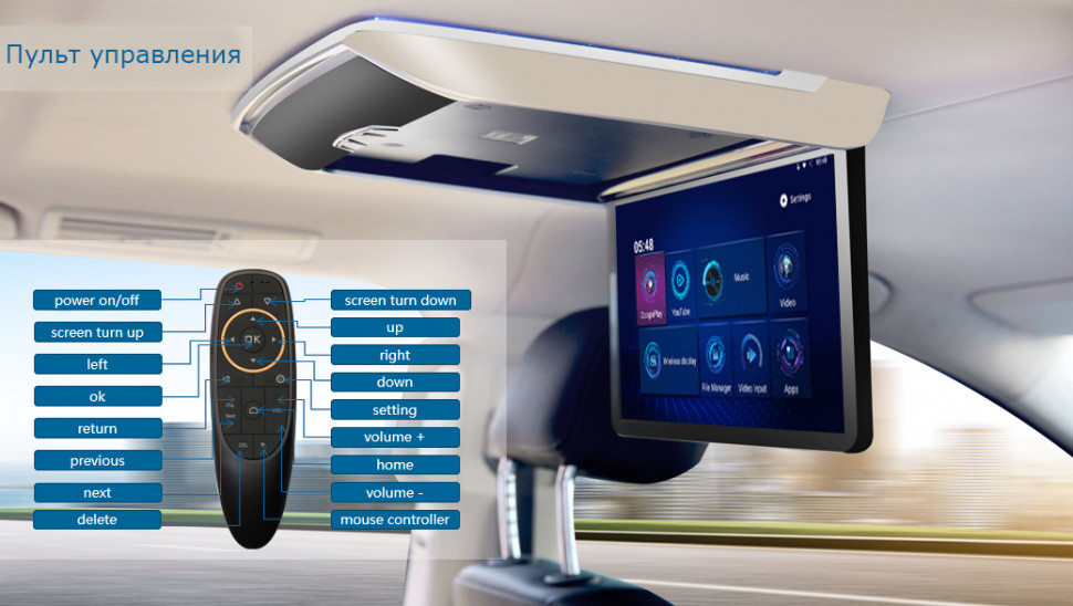 В потолочном мониторе есть встроенный модуль Wi-Fi! Раздав интернет с телефона, или подключив монитор к мобильному роутеру, вы и ваши попутчики всю дорогу можете коротать время за, уже привычном и удобном для нас, YouTube. Или же можно сразу из меню перейти в онлайн кинотеатр NetFlix!