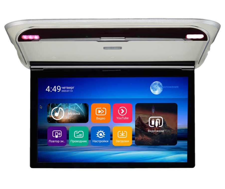 Как и во многих современных навесных мониторах в данном потолочном мониторе присутствует функция Mirrorlink для подключения телефона к устройству. Любой контент на вашем смартфоне будет мгновенно и без задержек отображаться на высококачественном экране потолочного монитора.