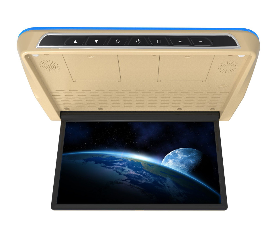 Дизайн потолочного монитора включает в себя контурную подсветку, которая имеет мягкий и приятный отраженный свет. Настройка режима работы происходит через меню.