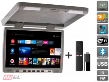 Потолочный монитор на Android AVS117 (серый) + Xiaomi Mi TV Stick + AV1252DC