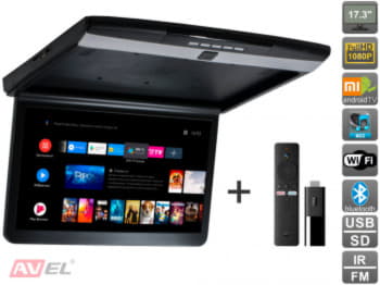 Потолочный монитор на Android AVS1717MPP (черный) + Xiaomi Mi TV Stick + AV1252DC