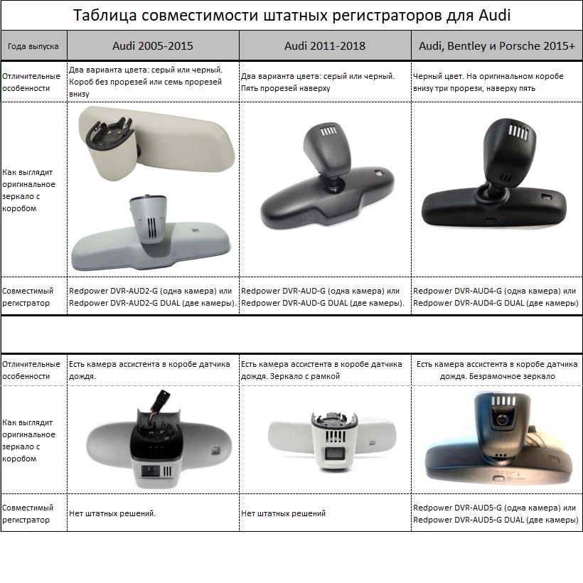 Видеорегистратор Redpower DVR-AUD5 совместим с автомобилями Ауди с датчиком дождя