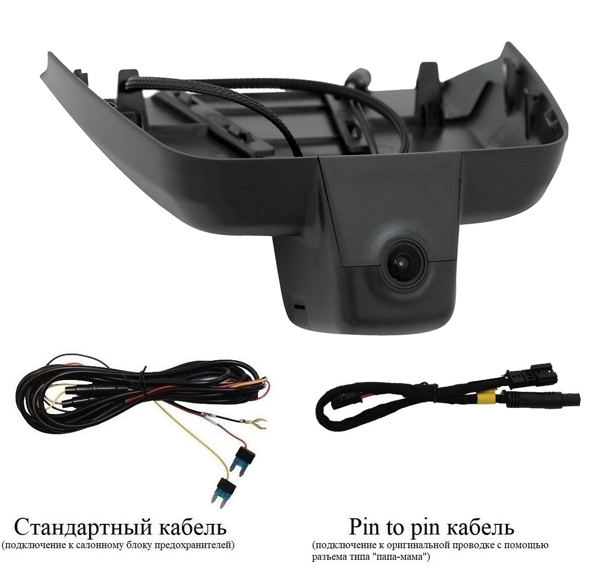 - Провод питания (два варианта подключения питания: стандартный кабель и кабель типа папа-мама к оригинальной проводке)