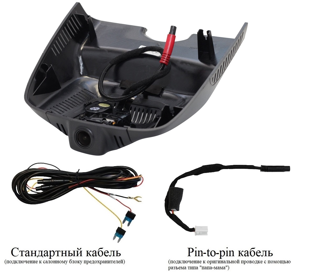 - Провод питания (два варианта подключения питания: стандартный кабель и кабель типа папа-мама к оригинальной проводке)