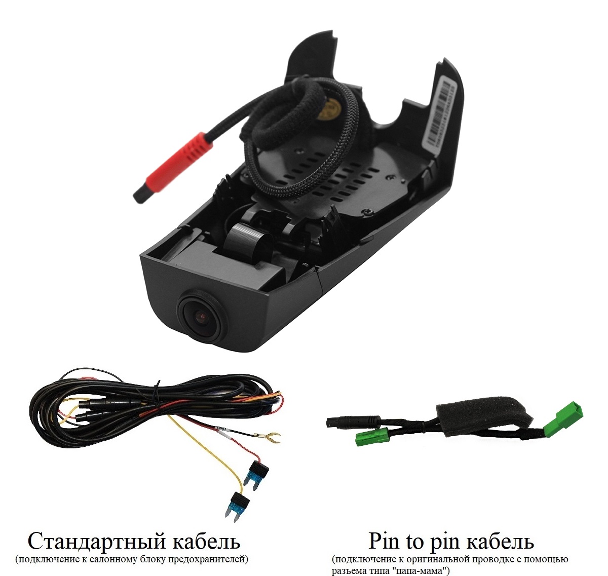 - Провод питания (два варианта подключения питания: стандартный кабель и кабель типа папа-мама к оригинальной проводке)
