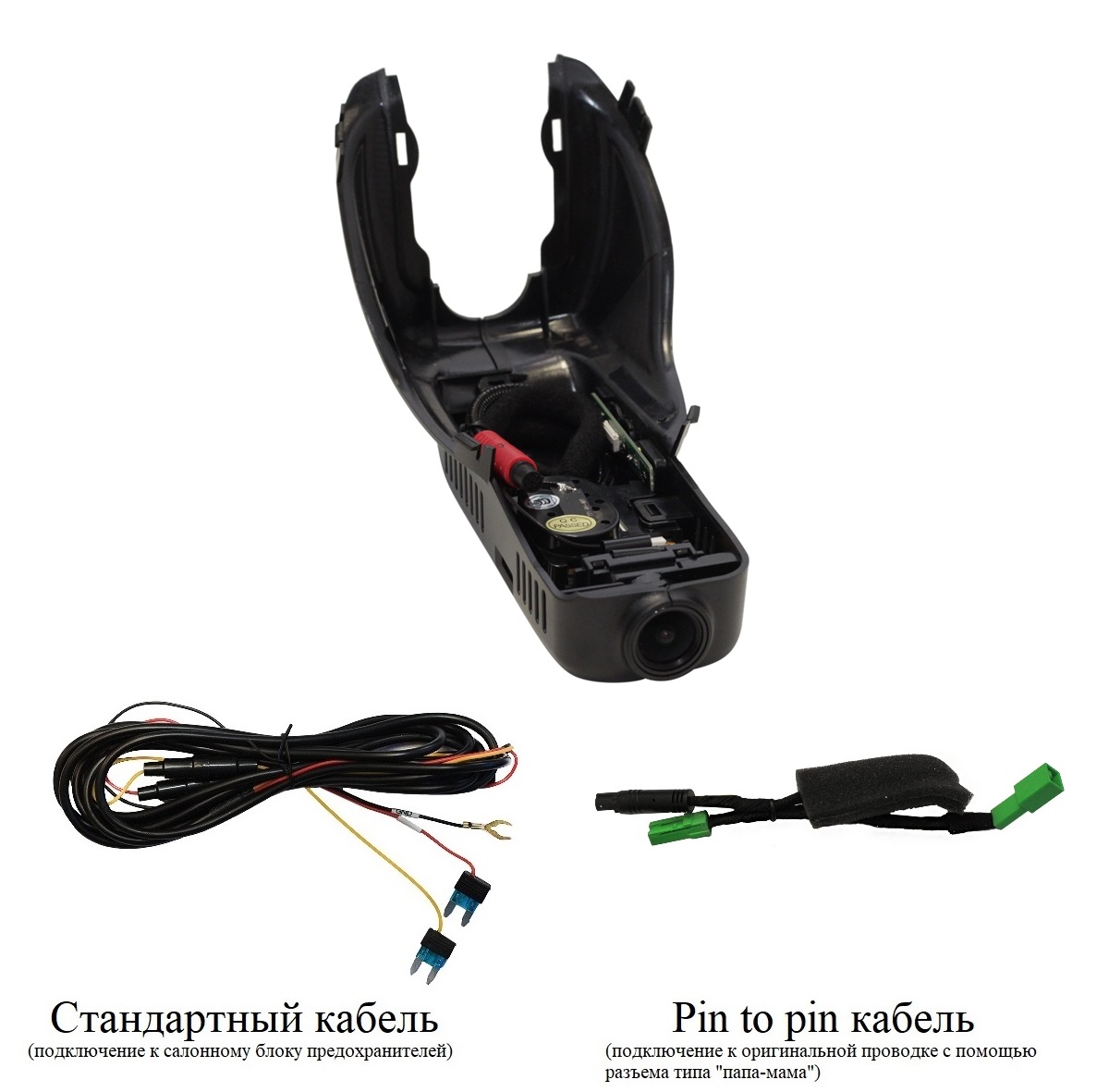 - Провод питания (два варианта подключения питания: стандартный кабель и кабель типа папа-мама к оригинальной проводке)
