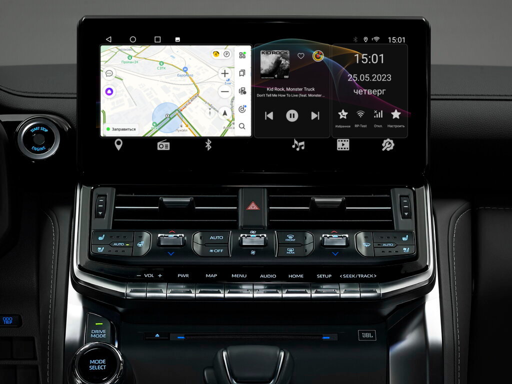 Навигационный блок для Toyota Land Cruiser 300 2022+ работает на ОС Android 10. Устанавливается на штатный сенсорный экран в дополнение к оригинальному интерфейсу, при этом сохраняет все штатные функции автомобиля, FM радио, работа кнопок на руле, штатная камера заднего вида, парктроник и т.д…