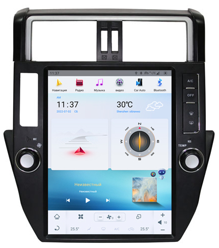 · Магнитола андроид для Toyota Land Cruiser Prado 150 в стиле Тесла — вертикальный огромный экран, как в знаменитом электрокаре, который делает управление функциями невероятно удобным.