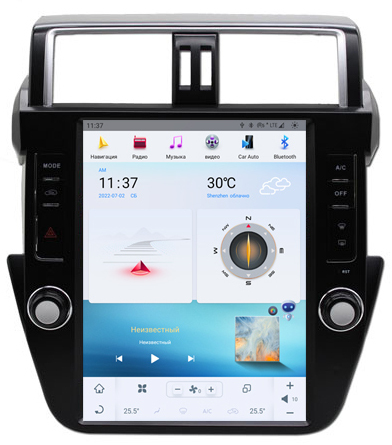 · Магнитола андроид для Toyota Land Cruiser Prado 150 в стиле Тесла — вертикальный огромный экран, как в знаменитом электрокаре, который делает управление функциями невероятно удобным.