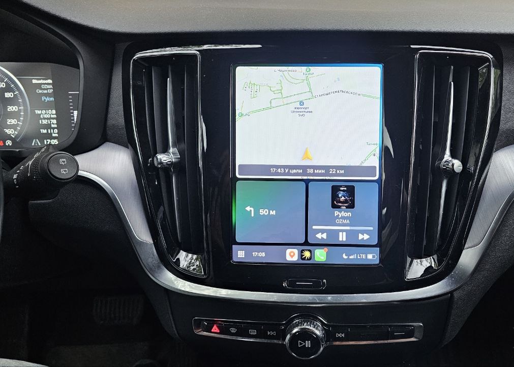 - Использование установленной в смартфоне навигации с поддержкой CarPlay на экране штатной магнитолы Volvo S60 2018—2025