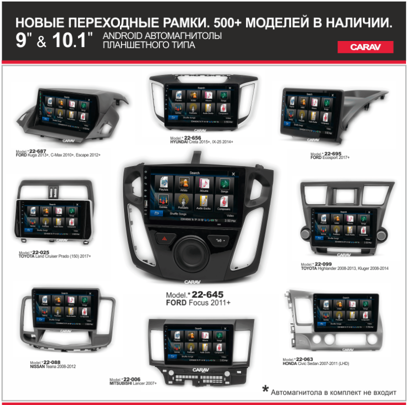 Наша компания стала официальным дистрибьютором фирмы CARAV на территории РФ. Теперь рамки для базовых магнитол CARAV появятся на нашем сайте как отдельные позиции, доступные для заказа. Приобрести их сможет любой посетитель – как наши оптовые клиенты, так и розничные покупатели.